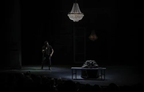 You walk to your seat through the Younger's front door — the same door at which Karl Linder, the emissary of terrified white residents, will soon knock. Actually, there are moments in Parson's staging when it feels like the front rows of the audience are sitting right there with Beneatha and her African beau, Joseph Asagai.