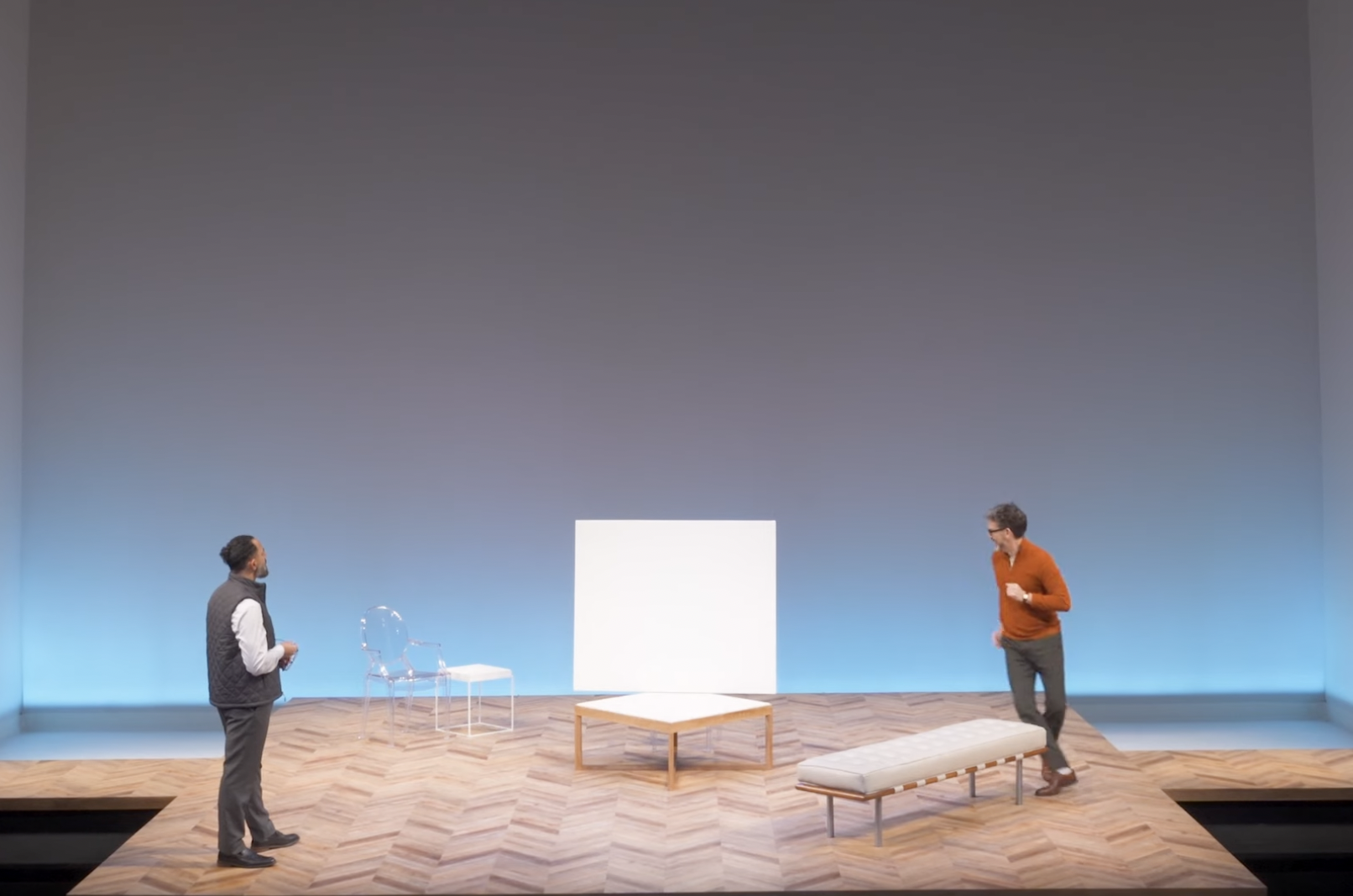 You walk to your seat through the Younger's front door — the same door at which Karl Linder, the emissary of terrified white residents, will soon knock. Actually, there are moments in Parson's staging when it feels like the front rows of the audience are sitting right there with Beneatha and her African beau, Joseph Asagai.