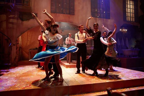 The play turns into a bacchanalian party! Dramatic lighting (Brian Sidney Bembridge) and percussive sound fill the set. The stage becomes a sort of giant jack-in-the-box with colorful smoke and trap doors. Fantastical people pop up everywhere. Chestnut Hill Local
