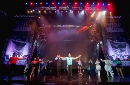 ..Alexander Burns walkway set and with Brian Sidney Bembridge's lighting, transforms it into Cathedrals, battlefields and the backroom dealings that led to Joan's doom.