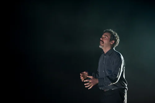 Director Alexander Burns and his theater group and designers bring theatrical bad boy Christopher Marlowe‘s work to life. There’s nothing musty about their production of this 400 year old play. The tradition of producing DOCTOR FAUSTUS with illusion, firecrackers, appearances and disappearances dates back to its beginnings, and Quintessence’s staging does trickery proud. The stage itself, a long and deceptively simple black platform, extends across the middle of the theater space. It’s built in the configuration of a right triangle, and the ensemble performs on its tilted diagonal surface. The Inquirer